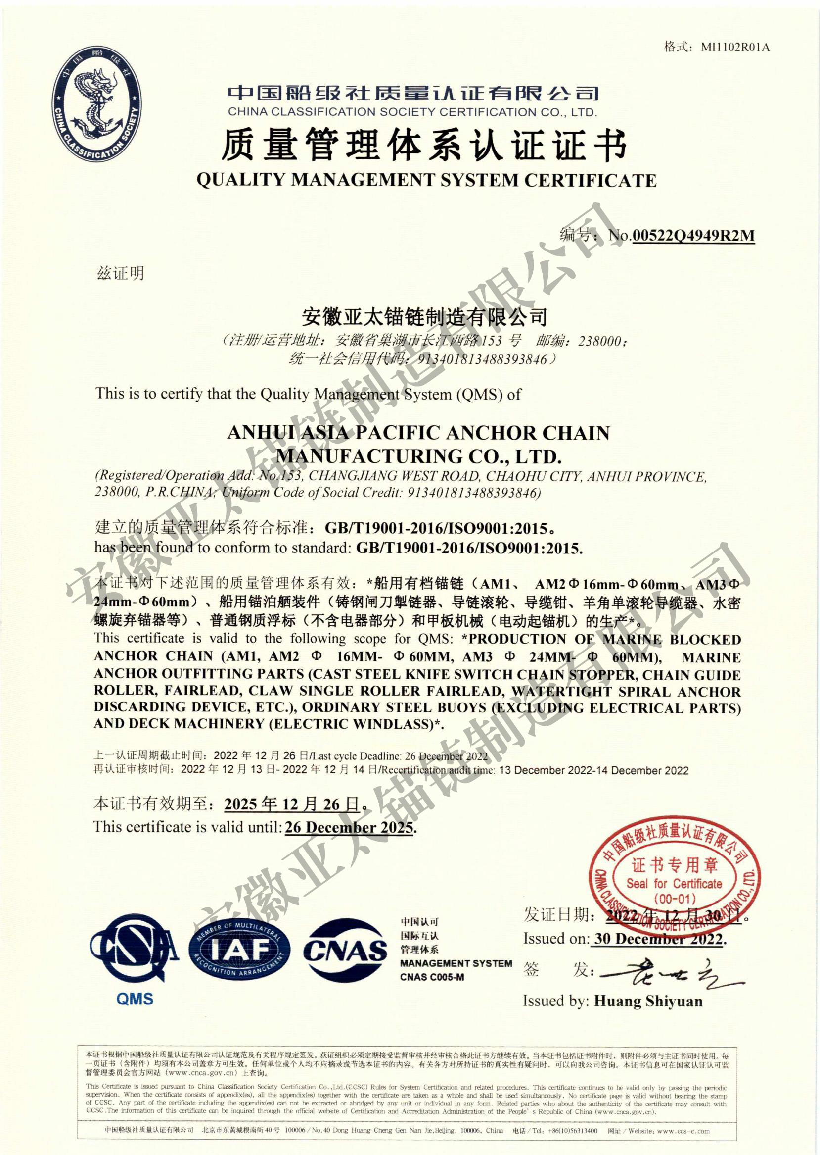 安徽亞太錨鏈制造有限公司